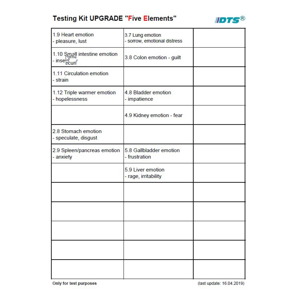 De testdoos "5 elementen uitbreiding 2019" bevat 12 testampullen en is geschikt voor iedere therapeut met een testdoos 5 elementen van voor die datum. In die nieuwe testdoos 5 elementen is de uitbreiding geïntegreerd.Gerelateerde Producten